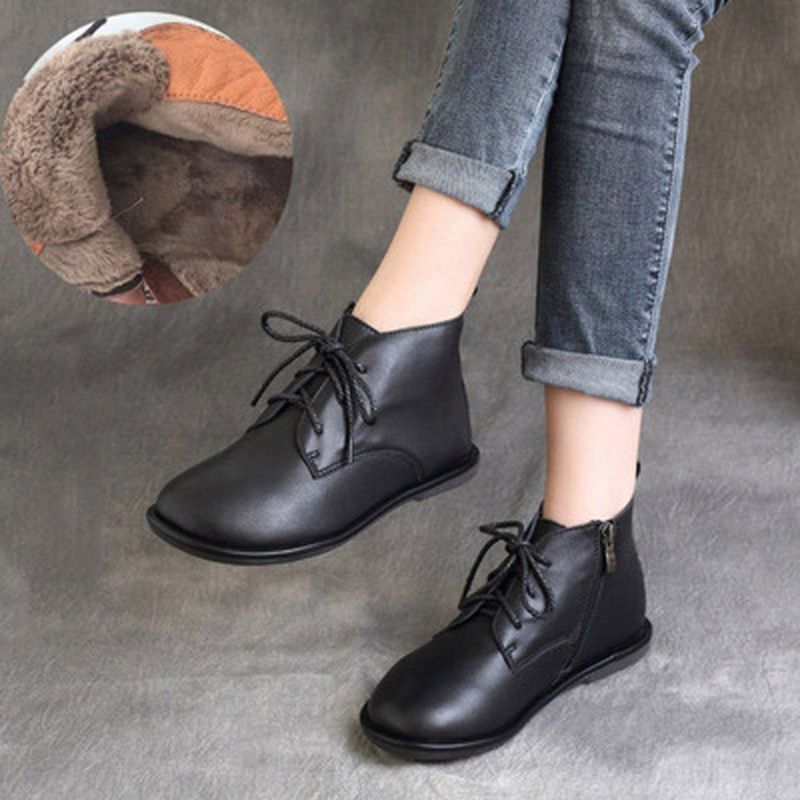 Efterår Vinter Retro Læder Håndlavede Damestøvler