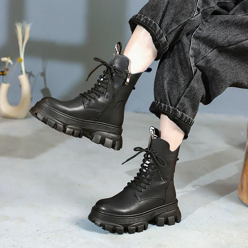 Kvinder Vinter Retro Mode Casual Plys Læderstøvler