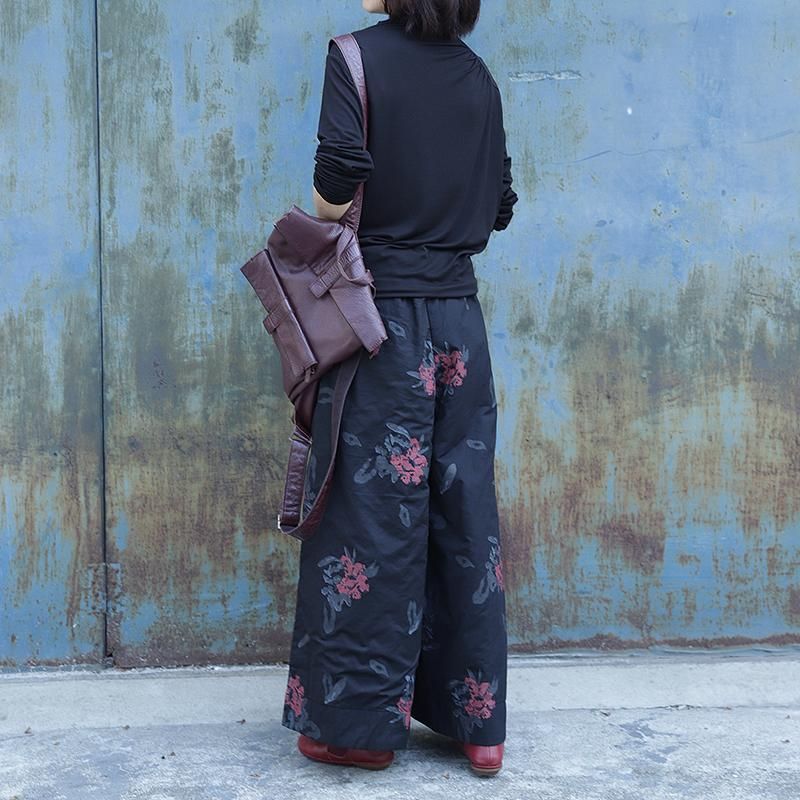 Retro Print Bukser Med Brede Ben I Bomuld Tykke Vinterbukser